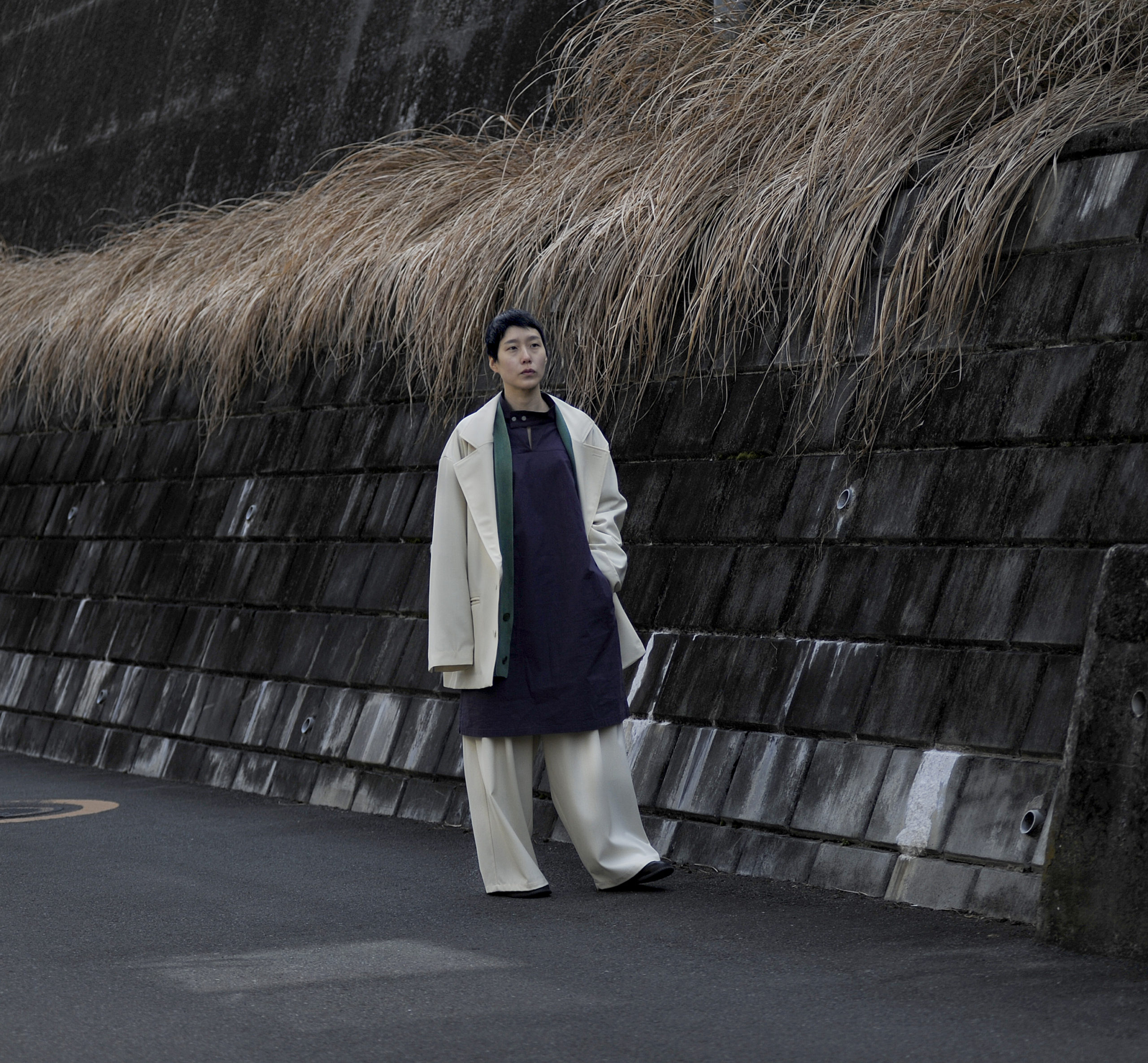 the fabric is made from 100% cotton, using coarse yarns that create a vintage-like texture and expressive surface.